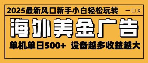 [2025最新风口 海外美金广告 单机单日500+ 可无限放大 设备越多收益越大 轻松上手]