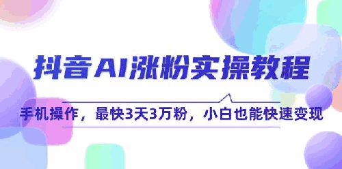 [抖音AI涨粉实操教程,手机操作,最快3天3万粉,小白也能快速变现]