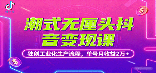 [潮式无厘头抖音变现课,独创工业化生产流程,单号月收益2万+]