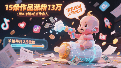 [用AI制作幼崽代言人,宝宝的控诉火爆全网,15条作品涨粉13万,单号月入5位数实操教程]