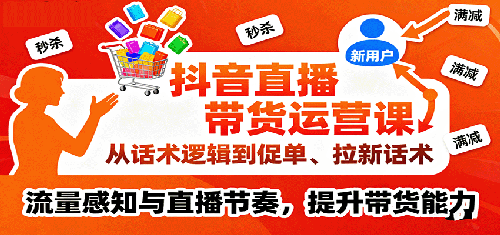 [抖音直播带货运营课,从话术逻辑到促单、拉新话术,流量感知与直播节奏,提升带货能力]