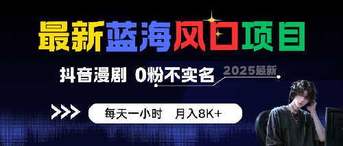 [最新蓝海风口项目,抖音漫剧,0粉不实名 每天一小时,月入8K+]