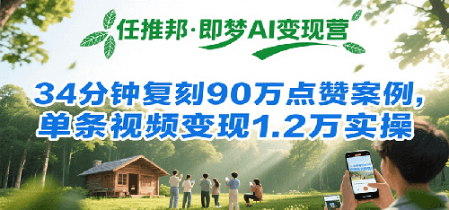 [任推邦·即梦AI变现营,34分钟复刻90万点赞案例,单条视频变现1.2万实操]