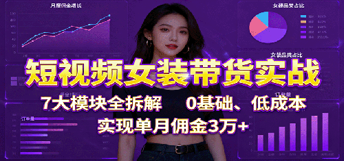 [短视频女装带货实战:7大模块全拆解,0基础、低成本,实现单月佣金3万+]